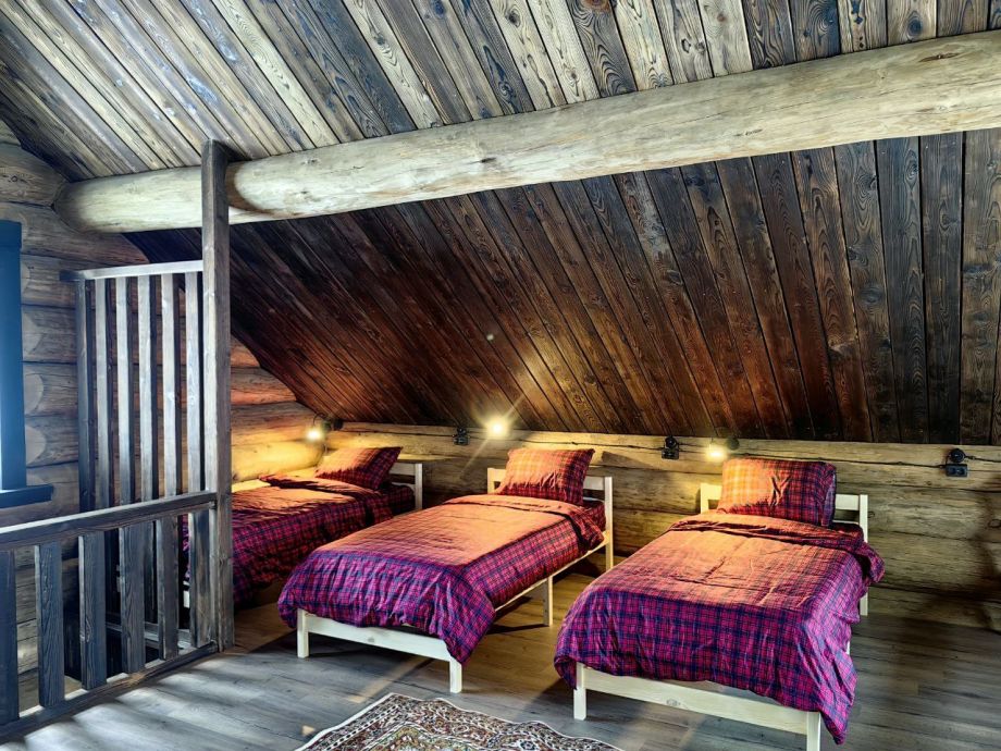 ВТОРОЙ этаж 60м2, здесь находятся 5 кроватей односпальные, 2- двух спальные.